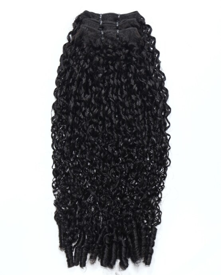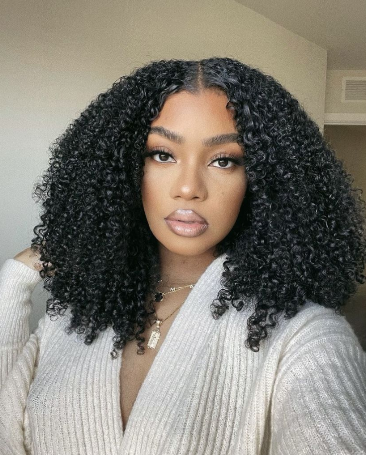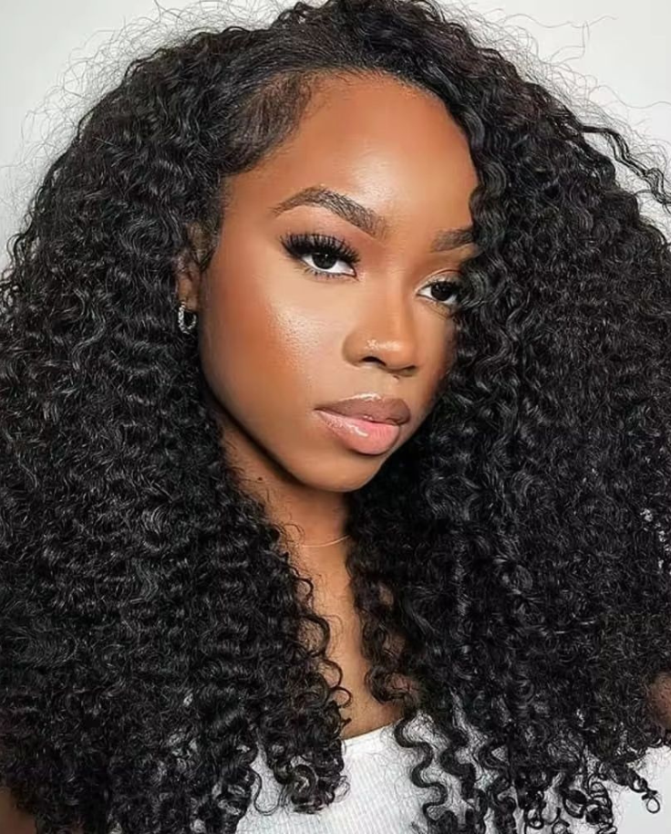 Kinky Curly hair features tightly coiled, dense curls that form a voluminous, textured look. This hair type has a natural, defined curl pattern with a lot of body and bounce, often requiring moisture and care to maintain its shape and texture. It’s bold, full of personality, and offers a unique, vibrant appearance.